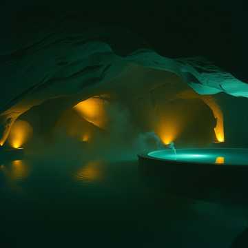 Mood: calming, immersive, ๆธฉๆณ-spa atmosphere
