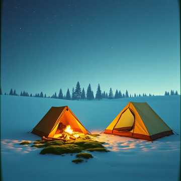 Mood: calm, immersive, quiet winter night, camping atmosphere
