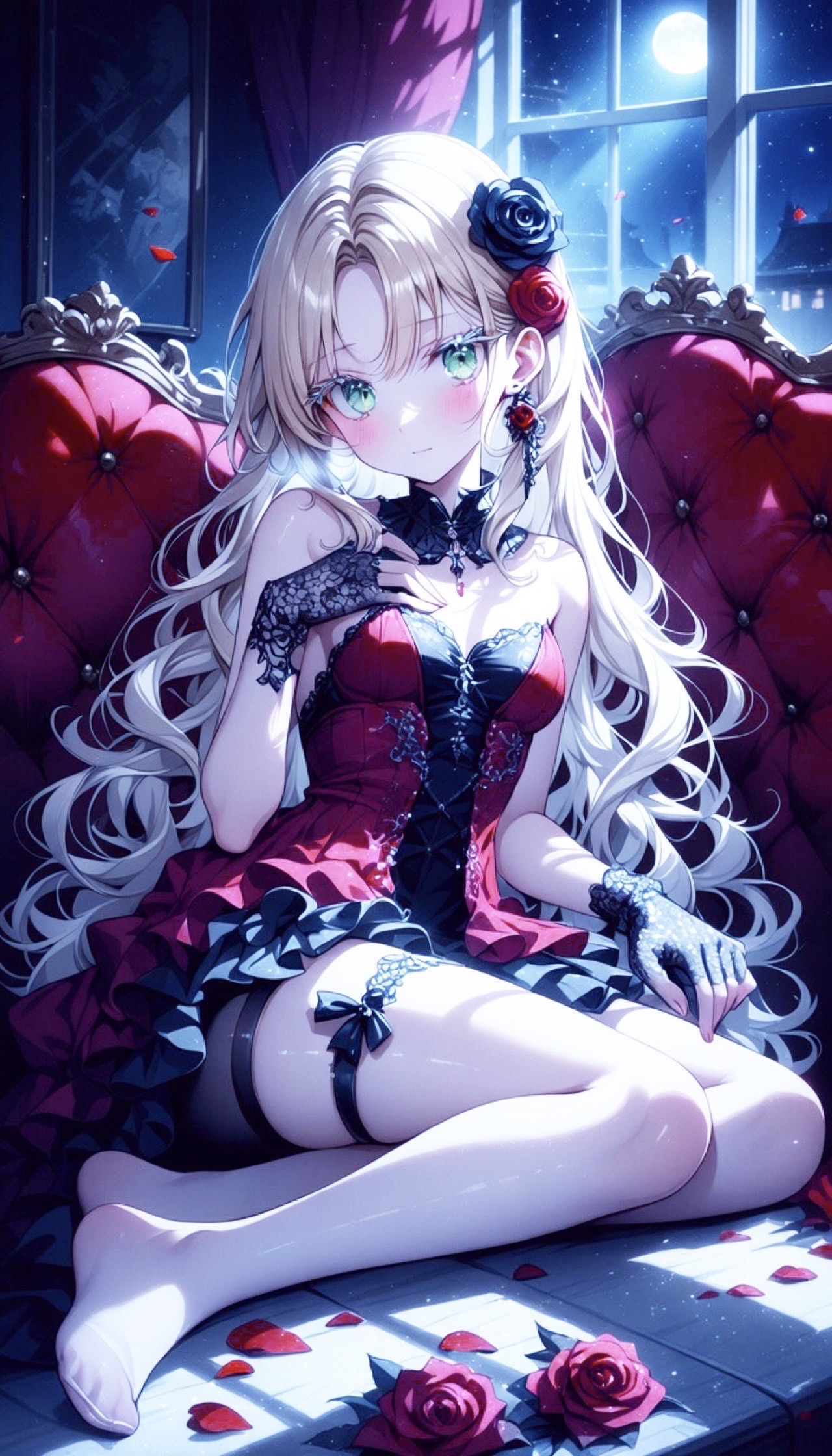 Ultra high-pitched female vocal, sensual and ethereal yet delicate, gently trembling like “ruru-menmen, ” with a soft, haunting, and obsessive tone, Dark elegant gothic pop with a smooth, flowing and immersive atmosphere, avoiding aggression, Scenes of a crumbling mansion, creaking floors, falling debris, flickering flames, glossy blood-red roses, and lingering shadows, where jealousy and desire melt together, Include subtle textures like wood creaks, soft fire crackles, light debris, whispered breaths, and intimate sighs, Mood is seductive, decadent, and fragile, with quiet madness and intoxicating pull, like a thorn-like love that slowly pierces and consumes