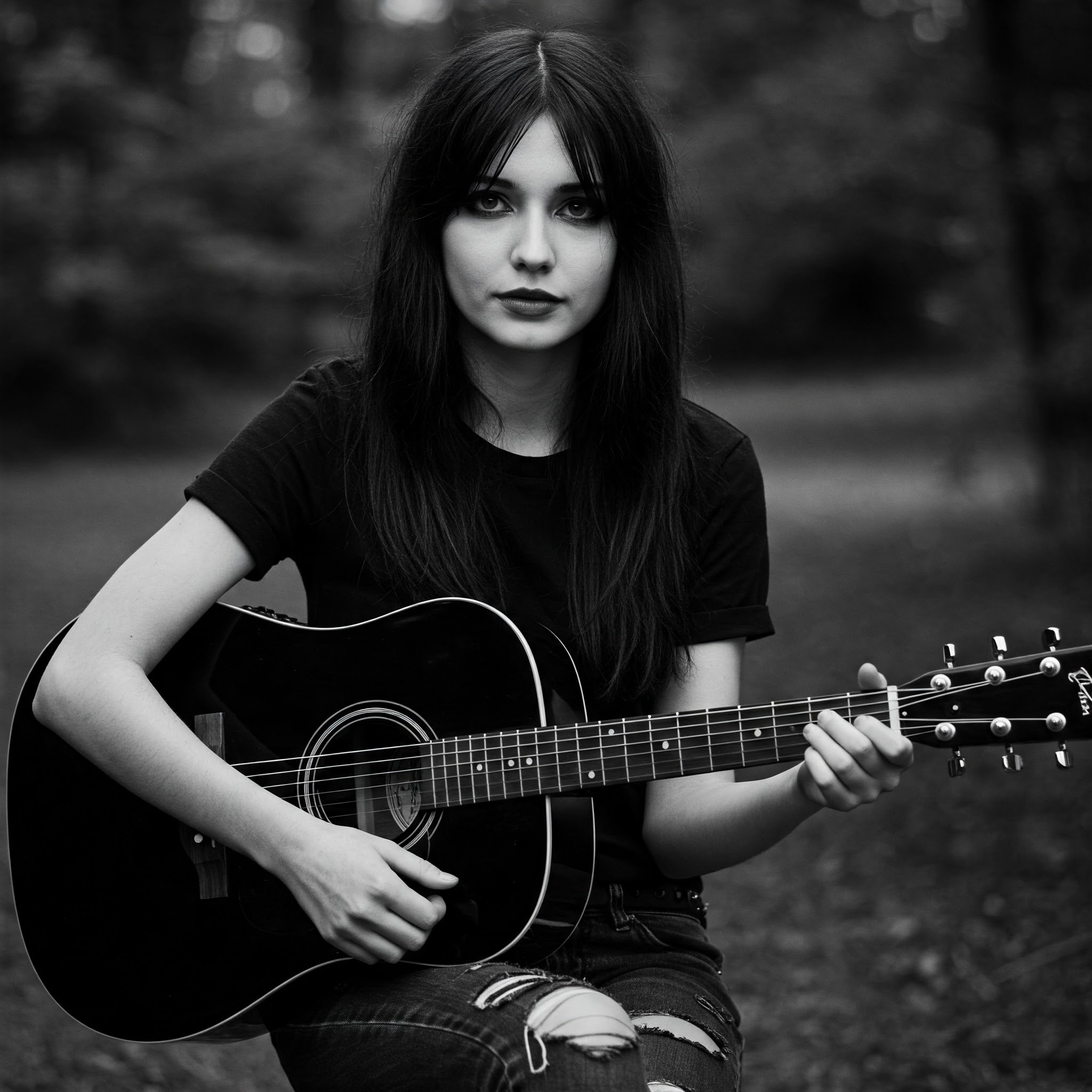 The sound should blend indie folk and punk with instruments like acoustic guitar and cinematic strings, The vocals should be female, starting soft and brooding, building into fierce and venomous tones, The mood is dark, intimate, and emotionally explosive, exploring the shadow side of the human heart, • Tempo: Starts slow (~70 BPM), builds to an urgent, raw pace (~110 BPM)