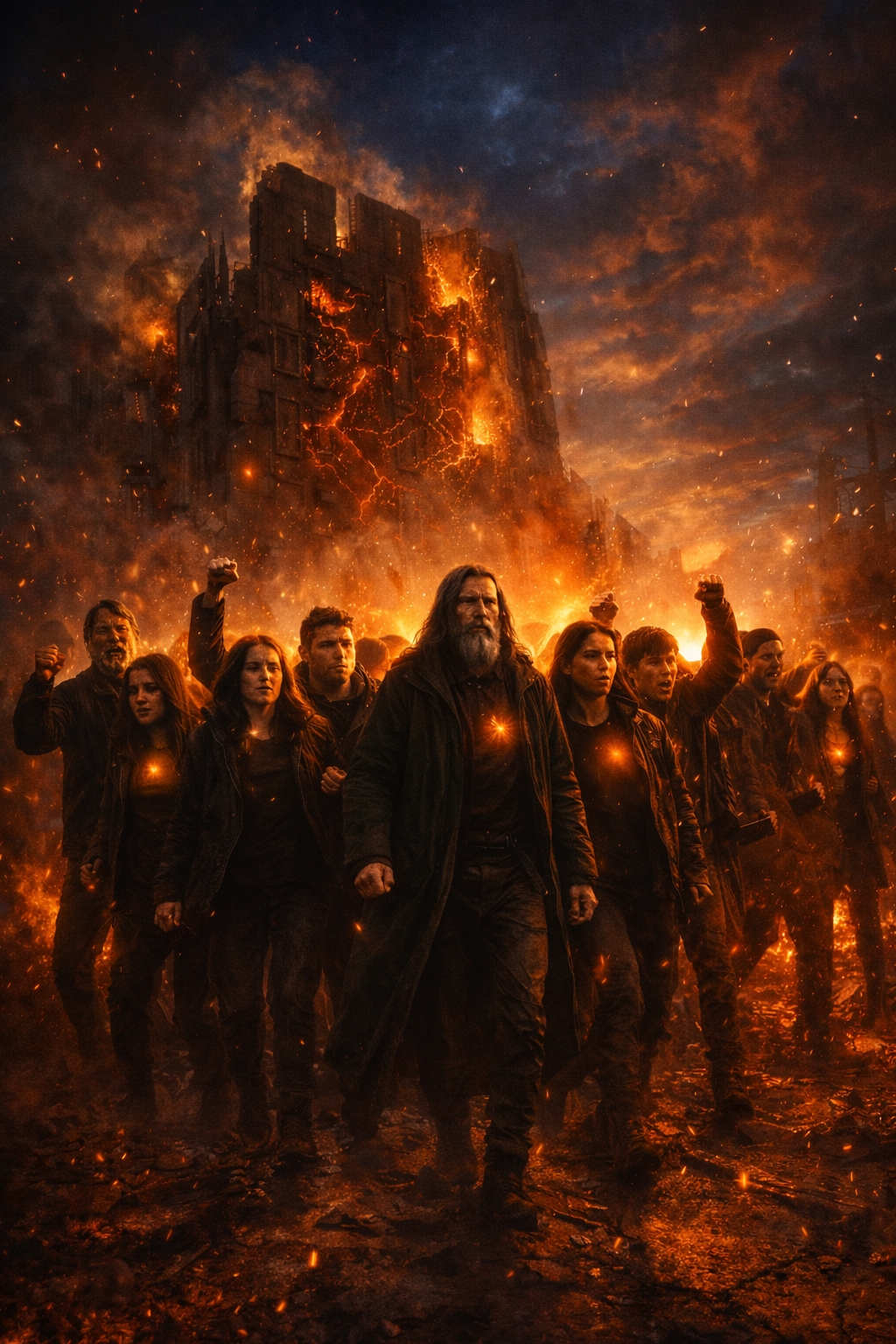 Epic cinematic Rap–Reggae–Rock–Ska Fusion im Stil von Myrddins Armee, Mischung aus treibenden Reggae-Offbeats, kraftvollen Rockgitarren, epischen Orchesterflächen, Ska-Rhythmik, militärischen Drums und modernen Rap-Elementen, Stimmung rebellisch, heroisch, emotional bewegend, Männlicher Lead-Vocal: rau, warm, entschlossen, mit kraftvollem Gruppenchort im Refrain, Sound: mächtig, filmisch, aufsteigend, mit Breakdowns und großen Builds, Atmosphäre: Feuer, Aufbruch, spirituelle Kraft, Freiheit, Lyrics exakt wie geliefert verwenden, Vibe: epische Rebellion mit Herz, Mut und Licht