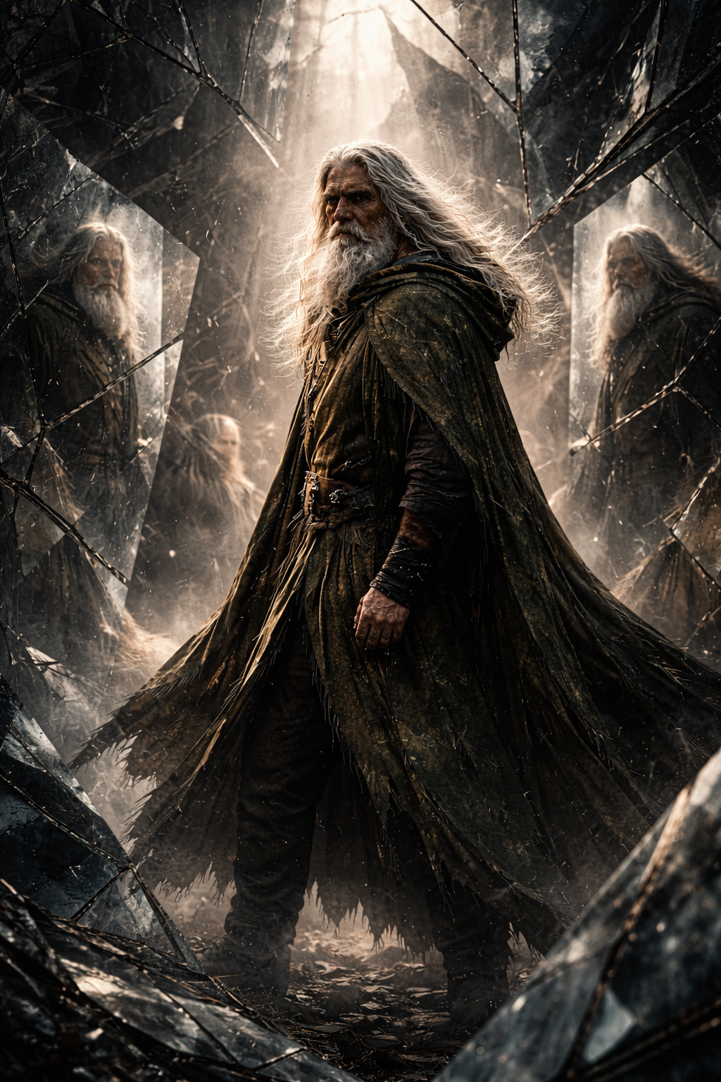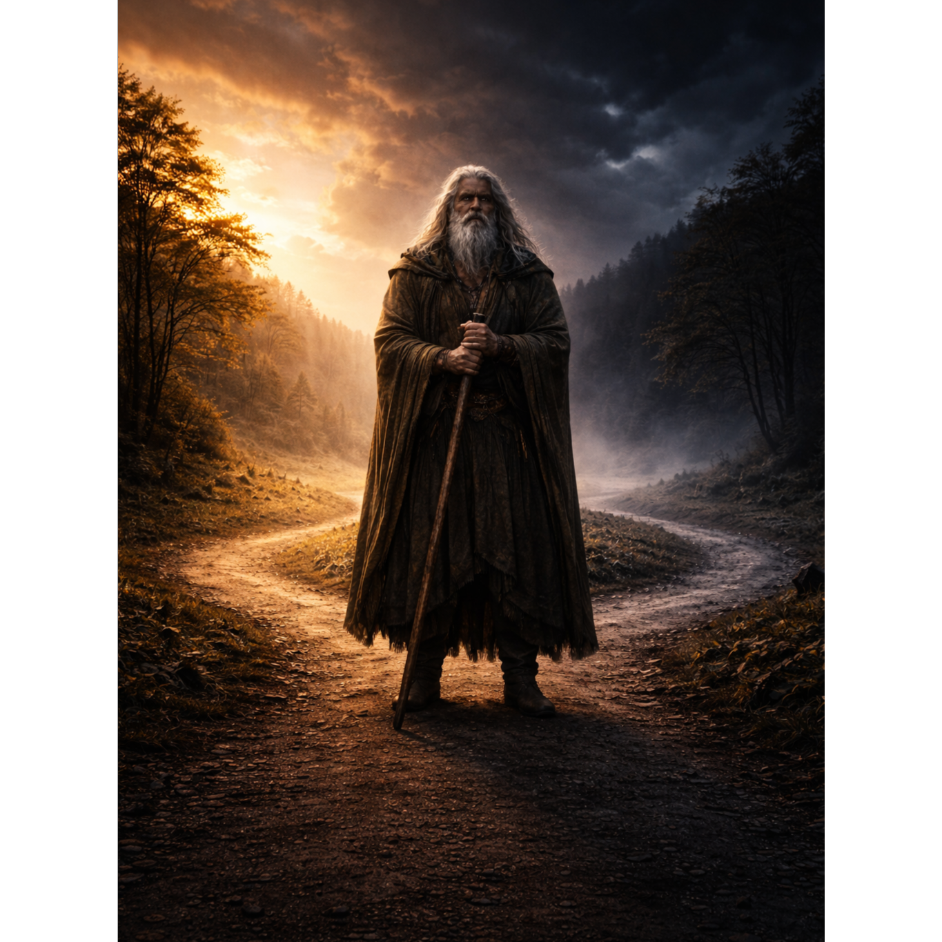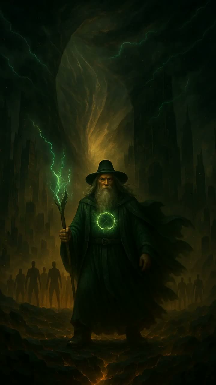 Myrddin’s Army Dark Sacred Rock–Metal–Rap–Reggae–Ska Fusion Style, Dark cinematic ritual in E minor, 110 BPM, Massive heartbeat drums like divine judgment, heavy low-tuned guitars, rumbling sub-bass, ominous choirs, Intro: whispered sacred questions, deep reverb, tribal toms, bells of fate, Verses: gritty rap + dark rock vocals over distorted bass pulses, metallic percussion, shadow-reggae offbeats creating a hypnotic sway, Pre-Chorus builds with tense strings, marching snares, rising brass — echoing “Kein König, kein Richter, kein Staat, kein Thron, ”