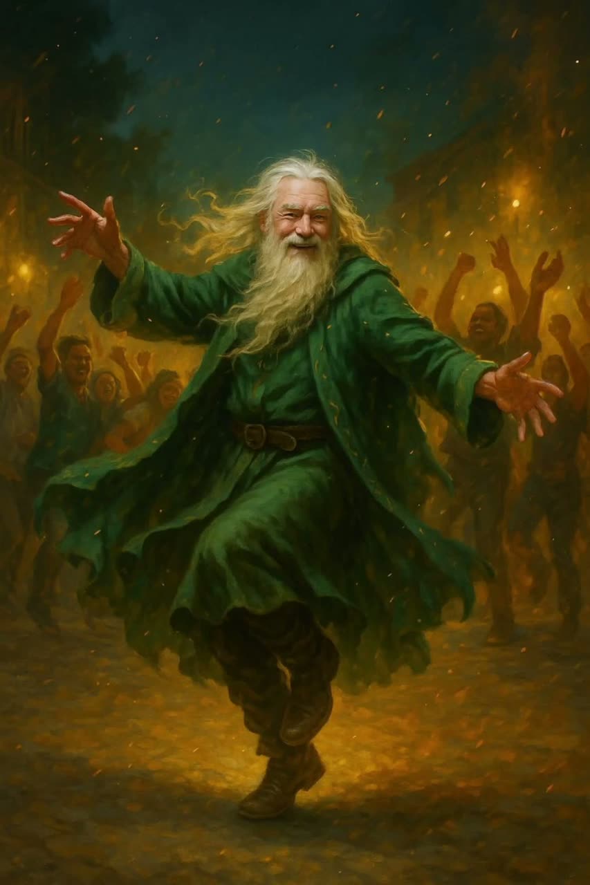 Create a driving reggae-based groove anthem with strong schunkel rhythm, infectious bounce and chant-ready hooks, Tempo mid-groove built to move crowds shoulder to shoulder, Deep, warm reggae bass leads the song, rolling and hypnotic, locking tightly with punchy drums and crisp offbeat-skank guitars, Verses delivered in confident, rhythmic rap flow — playful but sharp, conscious and direct, riding the groove effortlessly, Pre-chorus lifts with claps, vocal shouts and rising guitar lines, pulling listeners in, Chorus explodes into a massive sing-along hook: simple, repetitive, joyful and rebellious, designed to stick instantly, Ska guitar chops and occasional brass stabs add brightness and motion, while rock guitars bring grit and power without killing the groove, Myrddin’s voice sounds warm, grounded and inviting — a leader inside the circle, not above it, Mood: unity, awakening, movement, Emotion: joy with bite, freedom through rhythm, Festival-ready, hypnotic, uplifting unforgettabl