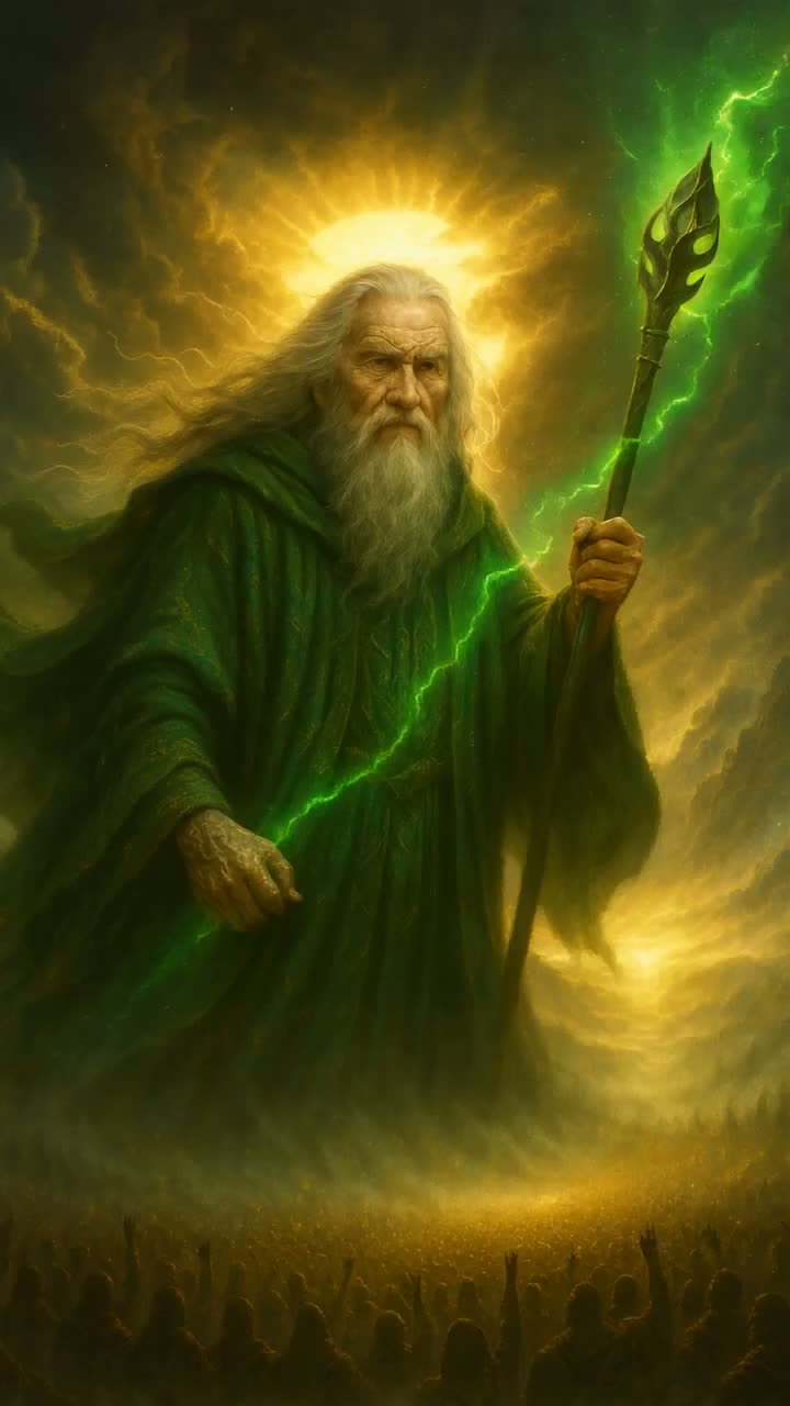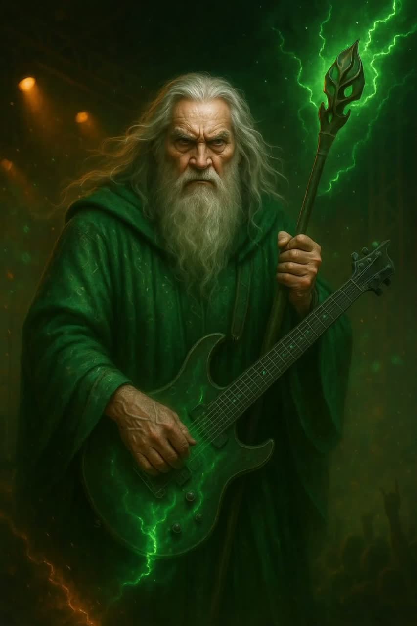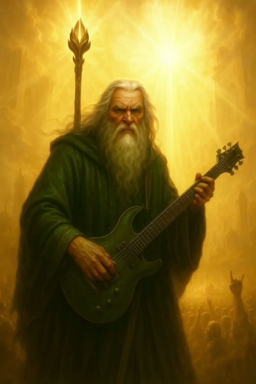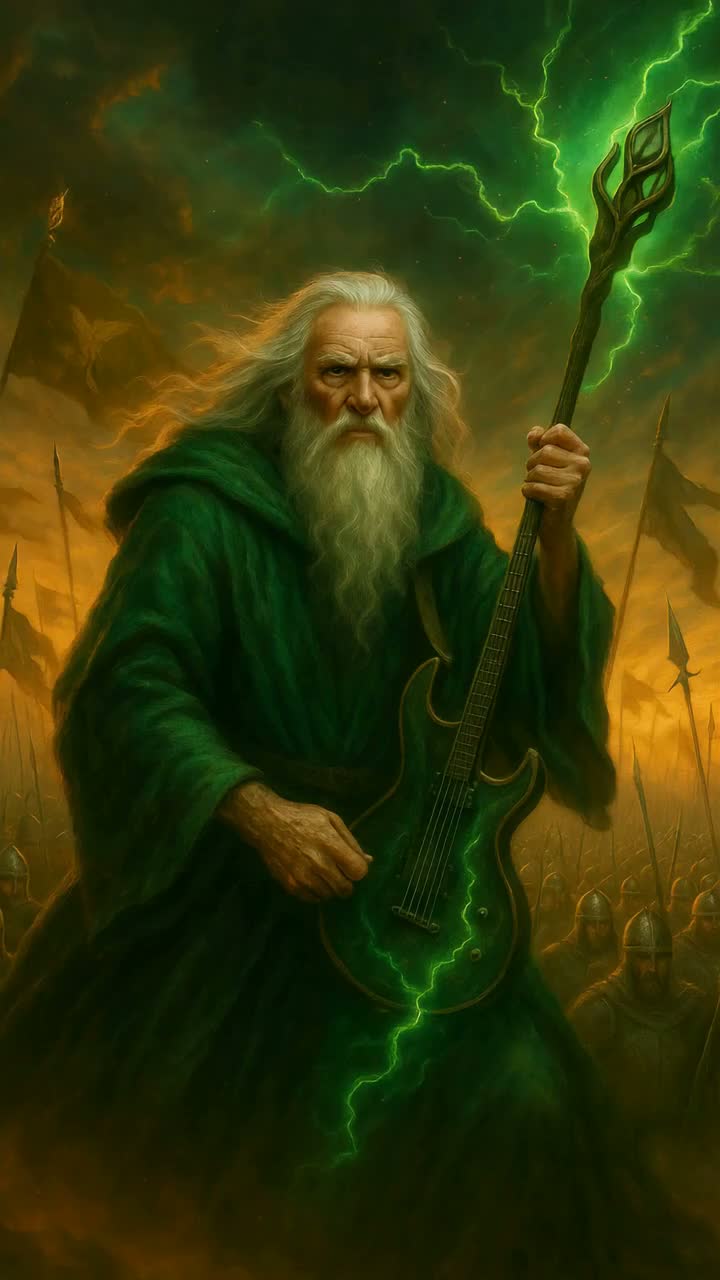 A German power metal–rock–reggae–rap–ska fusion at 140 BPM in E minor, built as an epic anthem for “Children of Light, ” Energetic offbeat reggae–ska guitars blend with heavy distorted metal riffs and melodic power-metal lines, Drums drive hard with punchy double bass and crisp snare accents, layered with tribal tom patterns for a mystical Myrddin feel, Bass is deep and rhythmic, locking into both ska bounce and metal weight, Vocals: powerful clean male baritone, emotional and heroic, shifting between melodic singing, rhythmic rap passages, and stadium-style shouts, Male choir adds luminous, anthemic lift in every chorus, evoking unity and future-hope energy, Brass stabs for ska accents; subtle airy flutes and rune-like pads add magical atmosphere, Guitar solos are melodic, expressive, technically sharp with tremolo picking and dive bombs, Wide stereo production, heavy compression for impact, reverb-rich choirs, big cinematic chorus drops, Mood: uplifting, fierce, glowing, a battle hymn