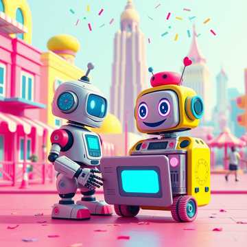 Bright kids-house groove with bouncy four-on-the-floor kick, rubbery bass, and chirpy chiptune-style synths, Verses stay tight and percussive; chorus blossoms with stacked childlike gang vocals and glittery arps, Short call-and-response hooks, clap accents, and playful filter sweeps keep it energetic and danceable for a kids’ tech show opening