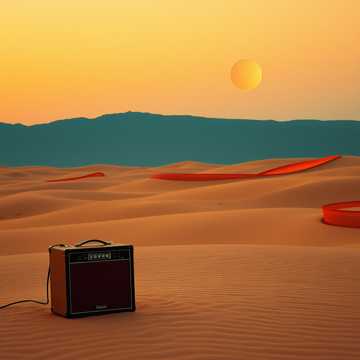 90s desert rock, palm desert scene, heavy stoner rock, fuzzy warm guitars, groovy bass lines, laid-back but powerful drums, sun-baked psychedelic vibe, raspy male vocals, sliding guitar solos, 100 bpm