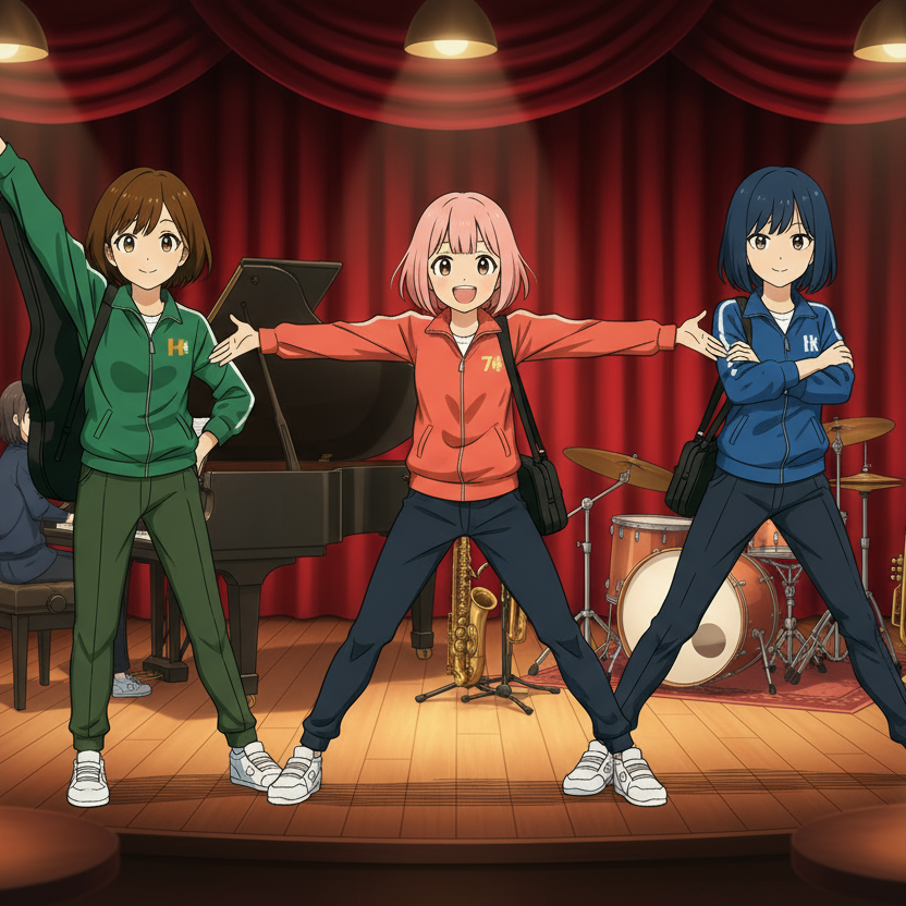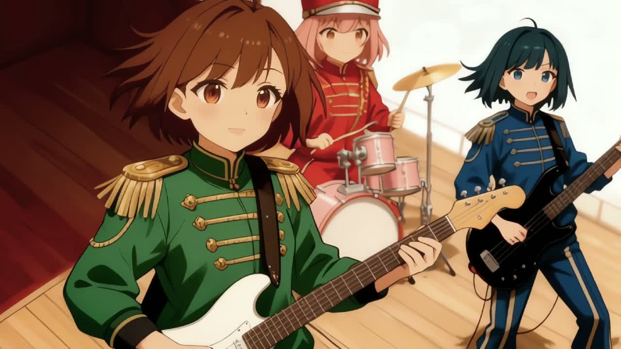 Math Rock with City Pop influences in the verses, and Funk groove in the chorus, kawaii voice, Clean guitar arpeggios and jazzy chords in the verses, playful walking bass and light hi-hats, Chorus explodes into funky rhythm with slap bass, 16th-note guitar comping, syncopated drums, and groovy energy, Bright and danceable, pop-friendly with a lighthearted tone, but uplifting and powerful in the final chorus, Add optional synth or brass stabs in the last chorus for extra energy