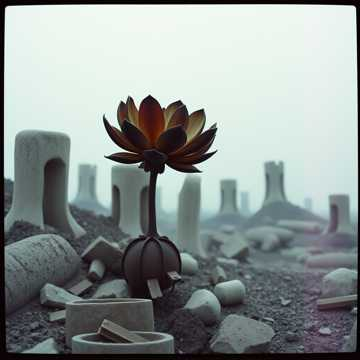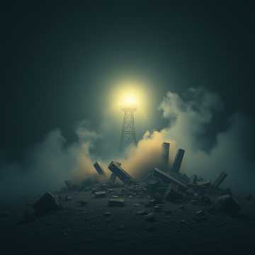 Dark ambient fused with cinematic industrial doom at 76 BPM, Use a 4-bar detuned upright piano motif—warbled, melancholic, buried under ambient distortion, Vocals are low-register, breathy, and intimate, landing on the piano’s downbeat with pauses for ambient textures to rise, Process vocals with plate reverb, light saturation, and whispered doubles in the final chorus, Add metallic drones, reversed guitar swells, granular noise, and hydraulic pulses that echo vocal phrasing, Doom guitar riffs—slow, choked, drenched in reverb—enter after the first chorus, Fretless bass slides beneath sustained notes, Include brushed snare hits and distant kick drums with long decay, Bridge introduces glitch textures, legato cello swells, and reverse piano tails, Final chorus mutates with vocal layering and ambient collapse, End with a transmission fading into silence, Lyrics are a signal to others buried in ruin—modular, defiant, cinematic