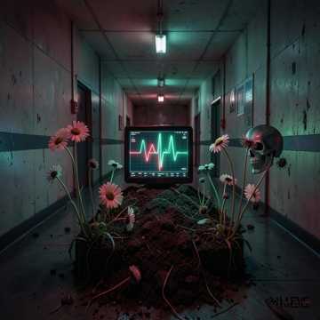 horrorcore, Create a Russian-language rap track blending melancholic, introspective lyricism with aggressive industrial-punk energy, Birchpunk, balalaika, symphony orchestra, emotional vocals, The vocal delivery should be raw and emotionally charged — alternating between rapid-fire, rhythmic flows and shouted, almost desperate refrains, Accompanying instrumentation includes distorted electric guitars, mechanical drum machines, analog synths, and gritty basslines, evoking a post-Soviet cyberpunk atmosphere, The mood is rebellious, existential, and urban, with themes of alienation, resilience, and late-night city solitude