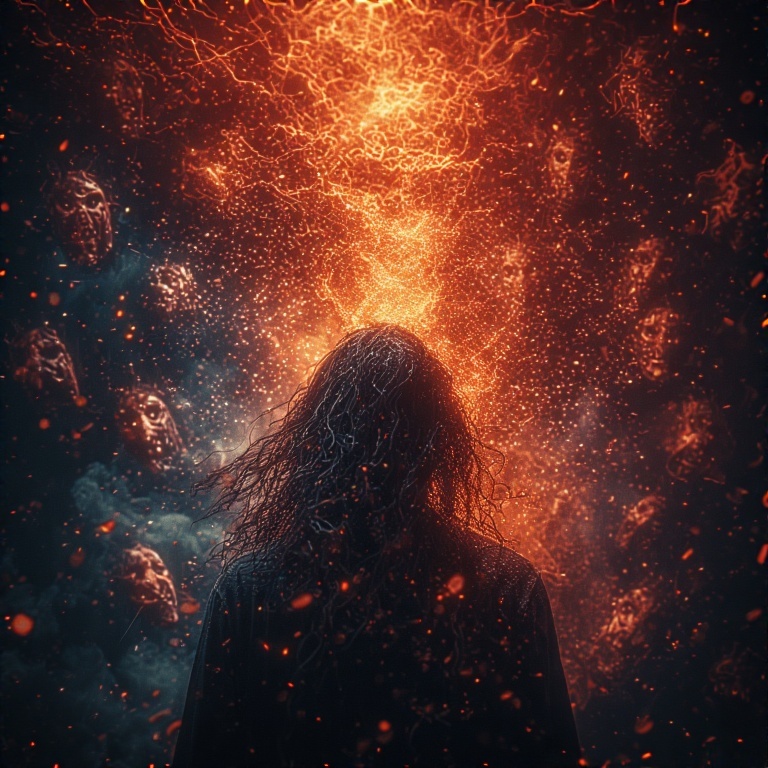 playful dark psychedelic raw goth metal / industrial metal layered / witch house ambient /aggressive metal playful dark psychedelic raw guitar riffs and solos, goth mature mal deep vocalist raw aggressive deep echos/ seductive - vocal effects, drums twist of viking traditional drums layered industrial metal
