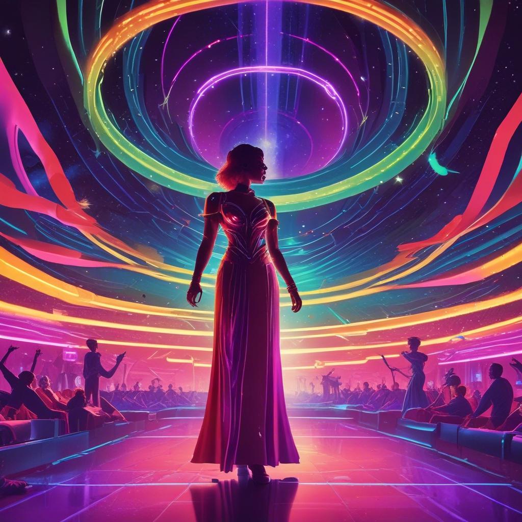 pop, Shimmering spacewave-pop ballad, with bouncy side‑chained bass, glossy synth pads, and a driving yet gentle groove in A major, tuned mellow at 432 Hz, Female vocals upfront: intimate, breathy verses with subtle wordplay; choruses blossom with sweet girl‑group humming and wide stereo reverb, 528 Hz-style healing drone tucked in the background, Haas effects for spatial depth, 3D immersion, crisp top‑end percussion, crystal-clear EQ balance, and a polished radio‑ready hook that rides a punchy, catchy low end, tone, magical, dynamics, uplifting, joyful, ballad, happy, female vocals, seductive, heartfelt, video game sounds, fantasy theme, rhythmical addictive, 80's vibes, futuristic sounds