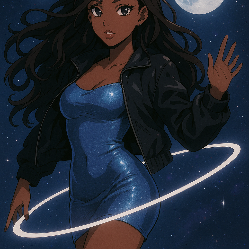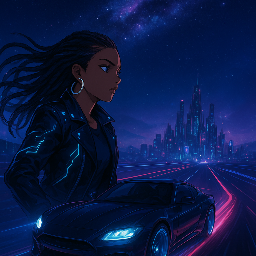 Black Female Futuristic trap x cinematic hip-hop, 148 BPM, heavy 808s, spacey synths, reverb piano, cosmic pads, female melodic rap + ethereal female vocals, late-night highway infinity vibe