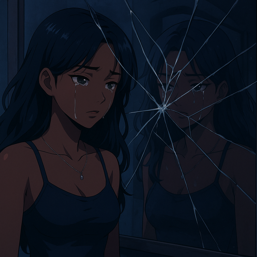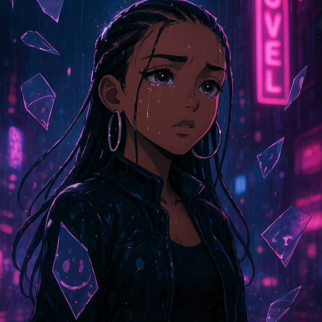 Black Female Emo rap x Alt R&B, 140 BPM, dreamy synths, 808s, muffled guitar plucks, emotional melodic female vocals with layered harmonies, haunting late-night vibe