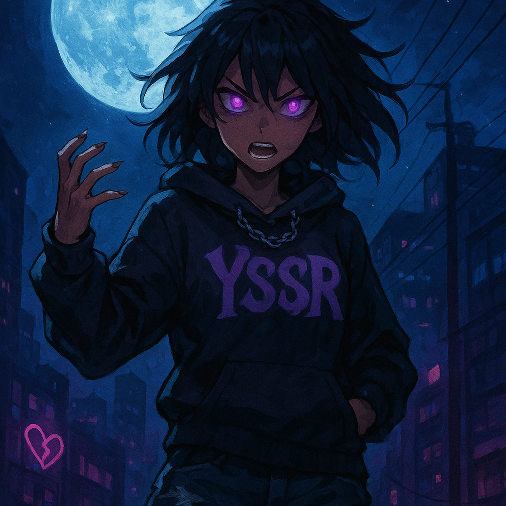 Black Female Rage rap x emo trap beat, 150 BPM, distorted 808s, glitchy hi-hats, spacey synths, reverb guitar, hype chant vocals with melodic emo singing, chaotic nocturnal vibe