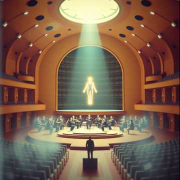 big phillharmonic orchestra, cello, violine, flute, horn, trumpet, trombone, timpani, delicate percussion, big chorus, child choir, rock opera, amazing electric guitar solo, lovely deep female voice strong, party, honoring, glorius, fullfilling