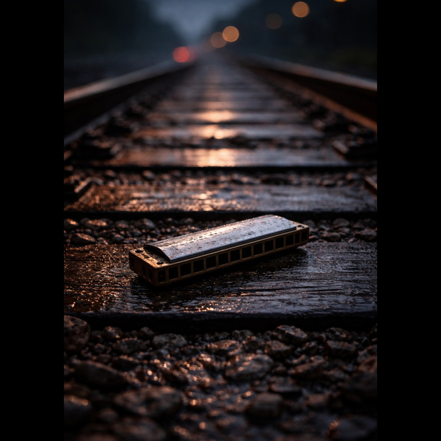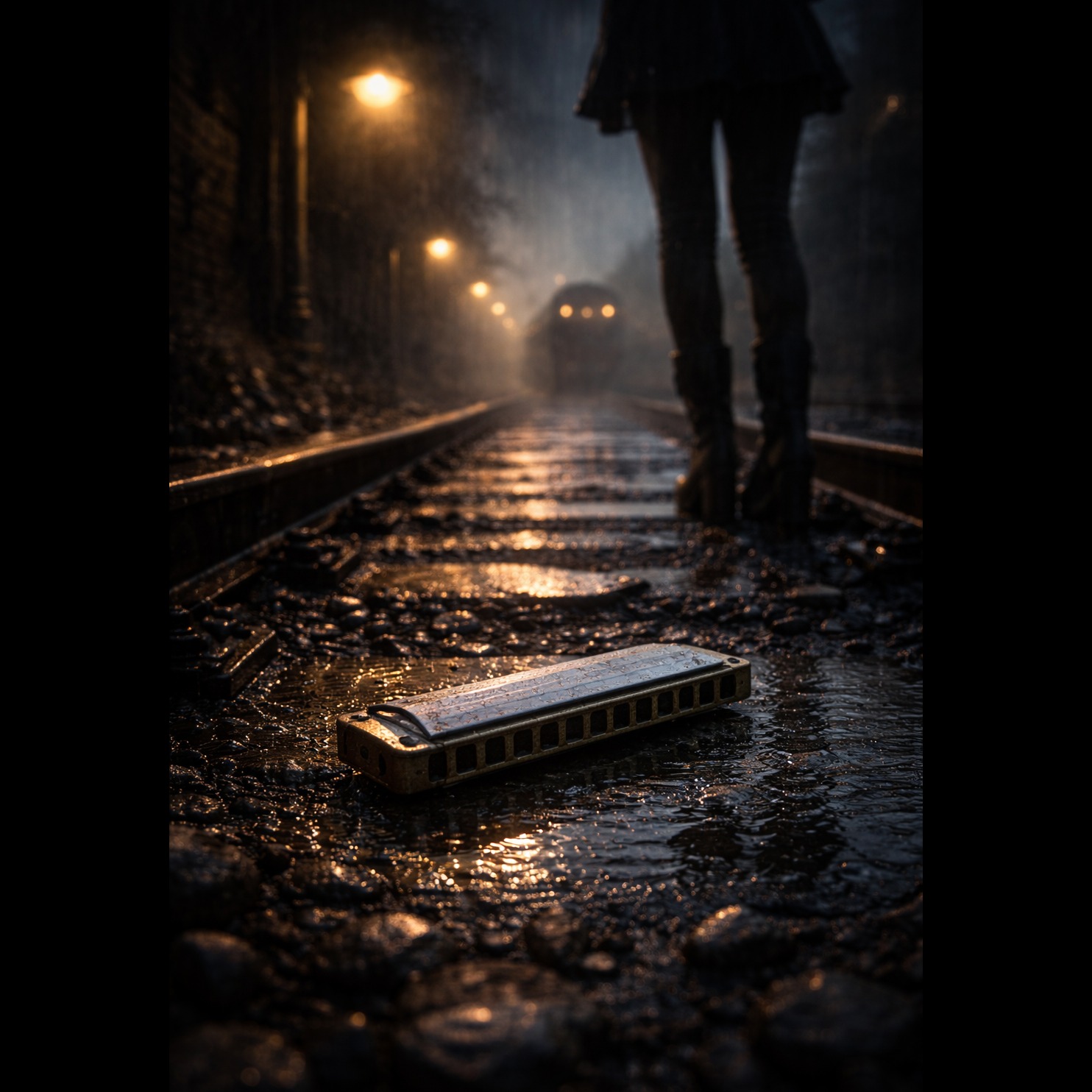 Dark Chicago Blues, Slow Blues, BPM85, Harmonica Lead, Minor Key, Deep Bending Notes, Moody Female Vocal, Heavy Space, Minimal Arrangement, Train-like Harmonica, Painful and Gritty Atmosphere