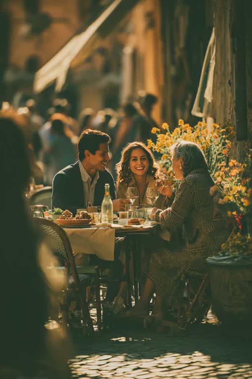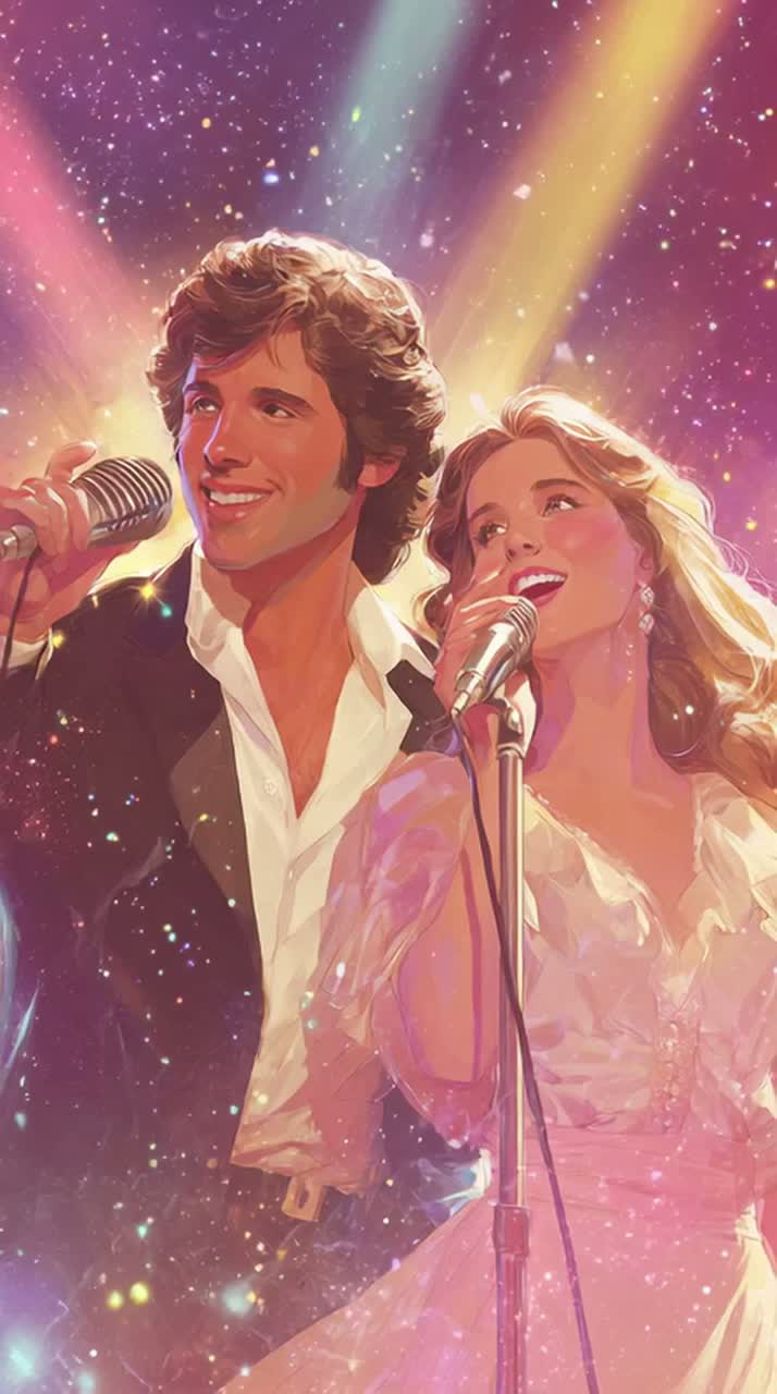A modern electro-pop dance duet (around 118–122 BPM) inspired by the classic romantic Italian duets of the 80s, A strong, passionate male vocal and a sweet, lyrical female vocal sing in call-and-response and soaring harmonies, with lyrics about eternal love, destiny, and the joy of being together, The verses are melodic and emotional, while the choruses burst into uplifting, festival-ready drops with layered vocal harmonies, Instrumentation blends modern dance elements — deep house basslines, crisp electronic drums, shimmering synth arpeggios — with Mediterranean touches such as acoustic guitar strums, violins, and subtle mandolin plucks, The arrangement builds dynamically, mixing nostalgia with modern club energy, The mood is joyful, romantic, and euphoric — a timeless love duet reborn for today’s dancefloor