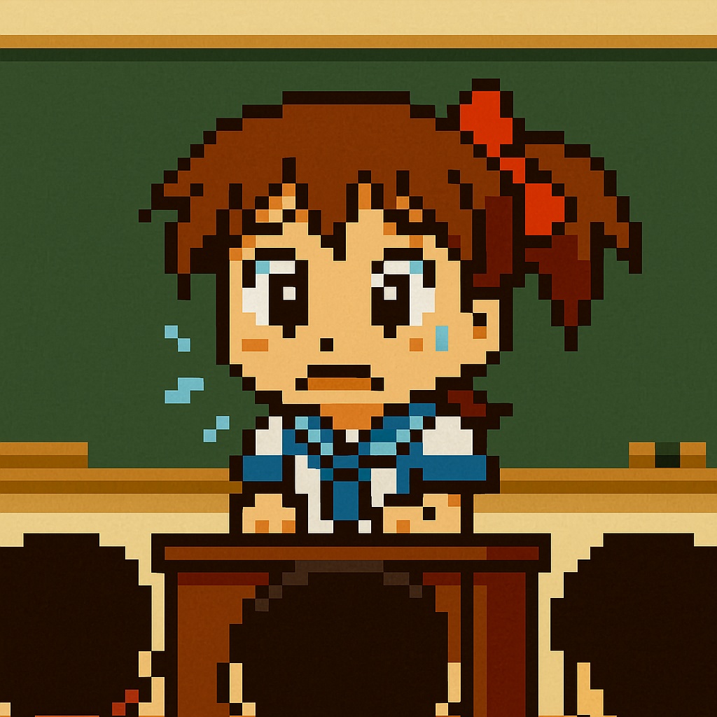 A sweet and slightly nervous 8bit chiptune in the style of MSX MEGA DEMOs, inspired by ANMA, The melody is gentle and shy, with soft portamento slides and sparkling arpeggios, Tempo is moderate (BPM 92), Imagine a little girl introducing herself in a new classroom, heart pounding but full of hope, PSG-style square waves with a slight pitch wobble, Chords move in a warm progression (I–IV–V–I), Instruments: PSG square lead, soft bass, subtle noise channel percussion, The song ends with a light sparkle, like a sigh of relief