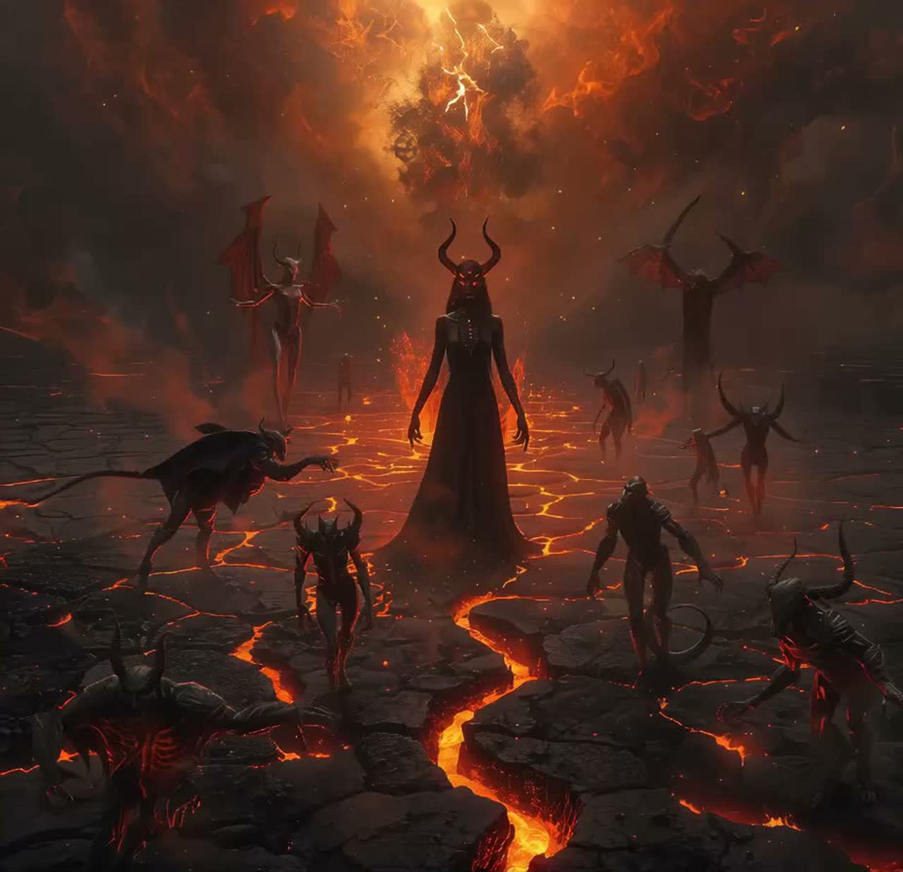Narrative: Lilith awakening before creation, gathering the first demons, breaking the silence of eternity