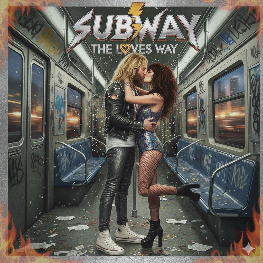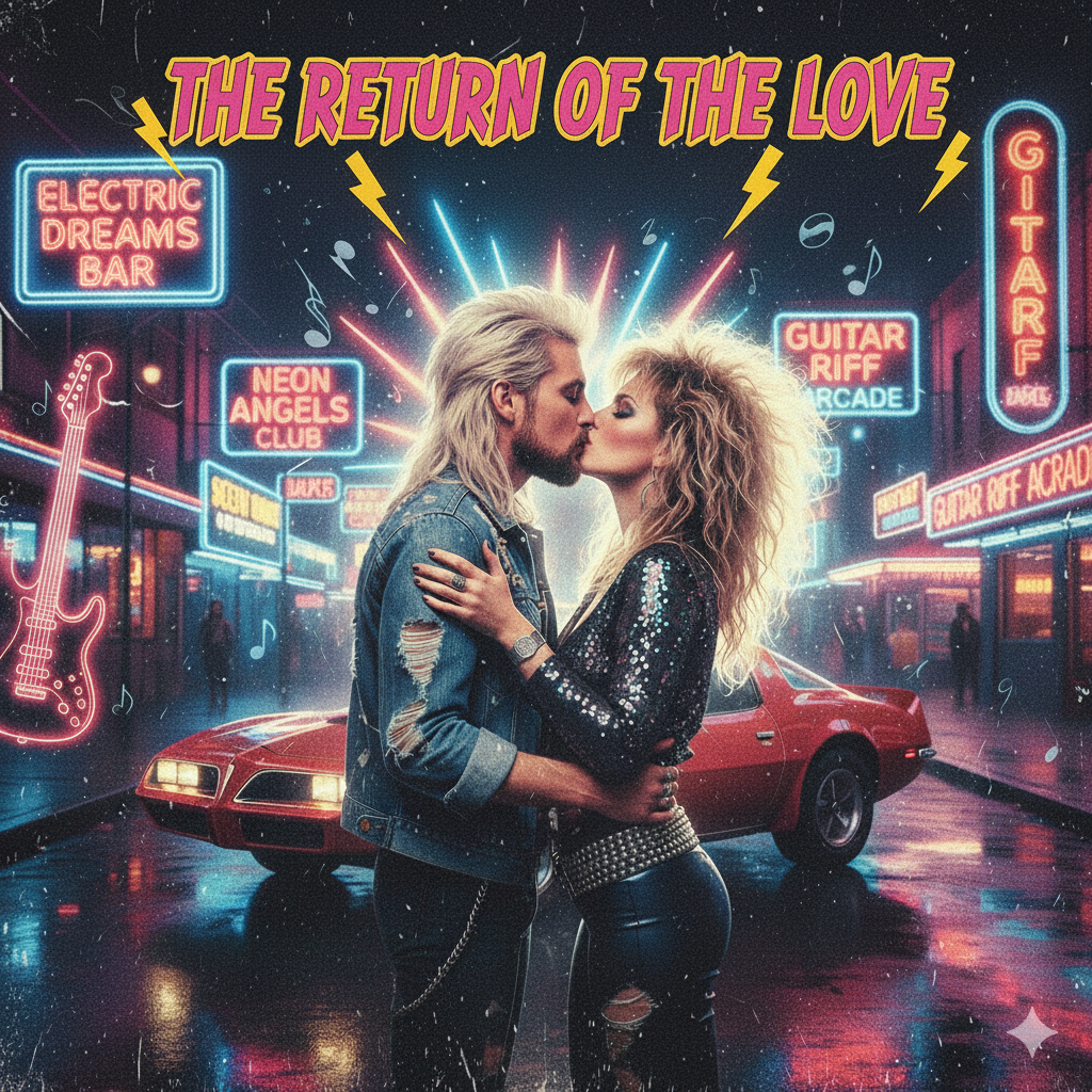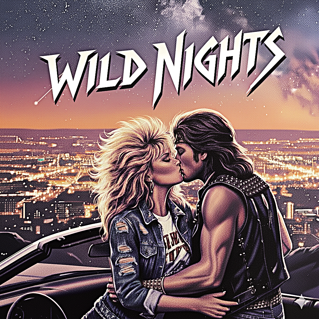 A soaring melodic glam metal track with lush keyboards forming the harmonic bed, driving guitars punctuating the arrangement, and energetic, punchy drums, Verses are driven by clean, syncopated riffs with synth accents, building to an anthemic chorus featuring layered vocals and expressive guitar leads, with lead and electric guitars solo 45sec duration, before closing with a triumphant, dynamic solo section and refrain