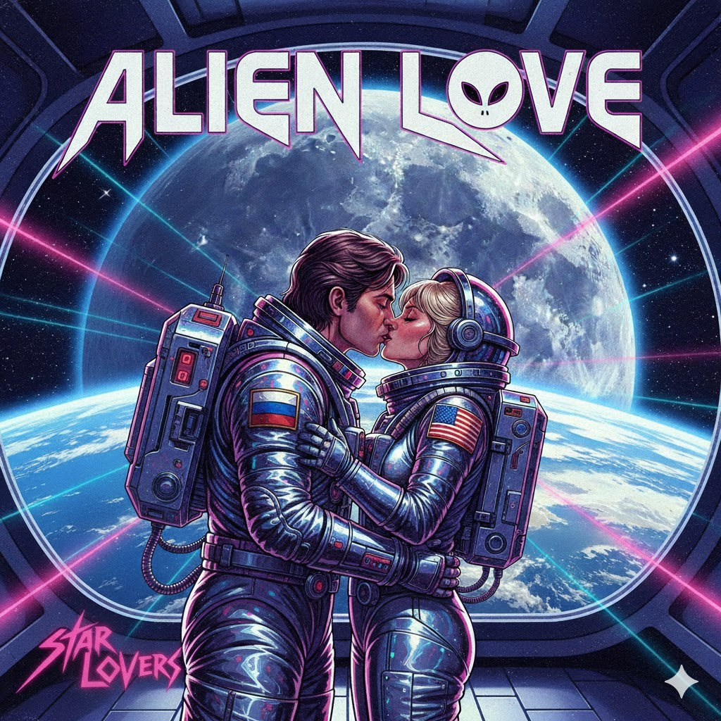 A soaring melodic glam rock track with lush keyboards forming the harmonic bed, driving guitars punctuating the arrangement, and energetic, punchy drums, Verses are driven by clean, syncopated riffs with synth accents, building to an anthemic chorus featuring layered vocals and expressive guitar leads, with lead and electric guitars solo 45sec duration, before closing with a triumphant, dynamic solo section and refrain