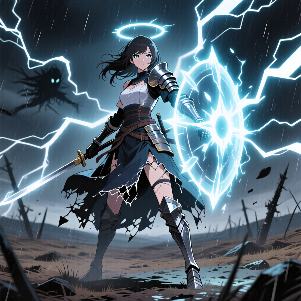 A high-speed Symphonic Trance anthem at 148 BPM, radiating intense anime battle energy, The track is anchored by a strict, heavy electronic four-on-the-floor kick and a rolling off-beat bassline that creates a pure trance drive, Instead of guitars, aggressive supersaw synth stacks and dramatic orchestral hits provide the heroic impact, The young female vocals are clear and powerful, utilizing "Belting" in the chorus to cut through the polished electronic mix, The breakdown features a symphonic violin section building into an explosive, high-energy drop, ‑Heavy metal, ‑rock, ‑electric guitar riffs, ‑distorted guitars, ‑live acoustic drum kits, ‑breakbeats, ‑funk rhythms, ‑16-beat syncopation, ‑jazz, ‑lo-fi, ‑slow tempo, ‑low energy, ‑mumbling