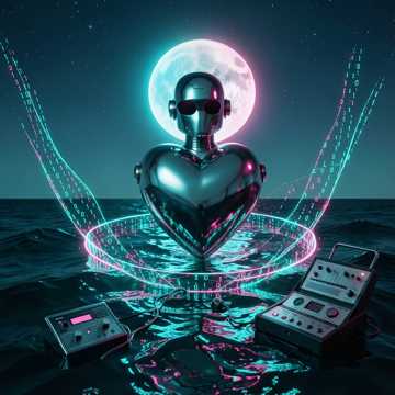 yacht rock, synth-pop, electric piano comping, nylon-string guitar, fretless bass slides, brushed snare kit, vocoder lead vocals, harmonized backing vocals, tape saturation, analog chorus, plate reverb, wide stereo imaging, 108 BPM, laid-back groove, bittersweet nostalgia, robotic romance
