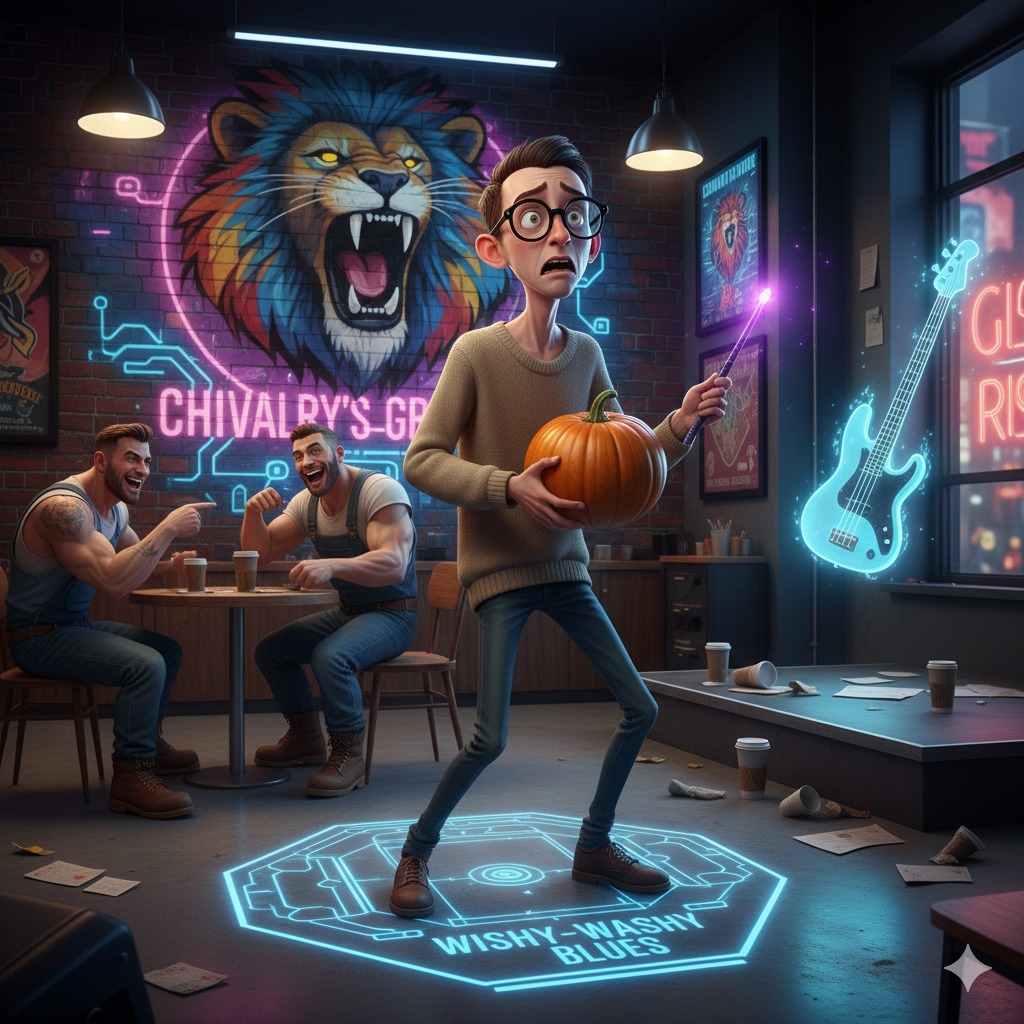 Intro (8 Bars) Guitar/Bass/Drums set the tight, fast-strum/slow-groove tension, Mandolin/Banjo quick 2-bar run before vocals start, Sets the restless, over-optimized tone, Male Vocals Verses: Fast-paced, cynical, anxious delivery, Chorus: Sincere, warm, melodic, opens up, Bridge: Slow, reflective, genuine emotional weight, Focus on strong contrast between anxiety (verses) and peace (chorus/bridge), Instrumentation Acoustic foundation (Guitar/Bass/Drums), Use rhythmic tension (fast strum over slow tempo), Clean, steady sound, S1 (Banjo/Mandolin): 8 bars, Frantic, high-register picking (Neurotic), S2 (E-Guitar): 16 bars, High-gain, soaring, then abruptly cut-off (Superficial), S3 (Piano/Cello): 16 bars, Warm, resolving, legato melody (Peaceful/Moral), These instructions now include the 8-bar musical introduction, setting the stage perfectly for the song's satirical and moral themes