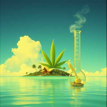 Style: Acoustic reggae-stoner jam, mellow tempo with soft guitar strums, steel drums, and light bong sound FX between verses