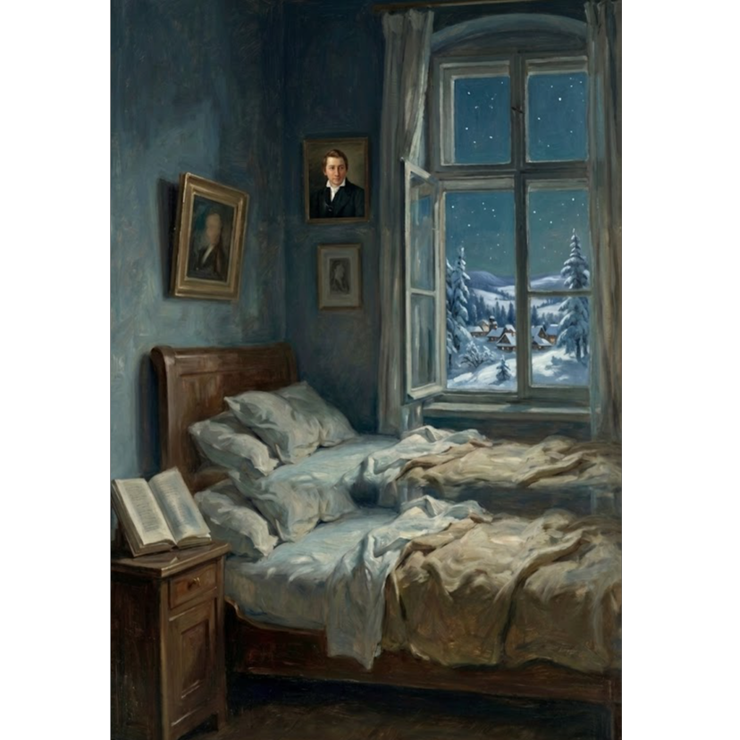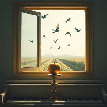[instrument: Grand Piano, French Accordion, Bowed Double Bass, Warm Rhodes, Swelling Strings Section, Clean Electric Guitar, Brush Drums, Glockenspiel, Atmospheric Pads, Vinyl Crackle]