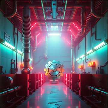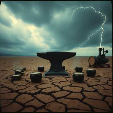 BPM 150, Mechanical Industrial Techno, clanging anvil strikes and rhythmic steam hisses, deep distorted sine-wave bassline, hypnotic shifting gears, Layers of rusted metallic percussion, high-pitched screeching oscillators, and dark rhythmic pulses, A sense of frantic automated machinery, dry room acoustics, sudden rhythmic silences followed by heavy drops