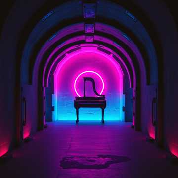 BPM 140, Darkwave-Industrial fusion, aggressive sawtooth bass, crunchy bitcrushed percussion, Medieval harpsichord melodies processed through modern glitch effects, icy FM synth stabs, and Gregorian chant samples, High-energy dance momentum, strobe-light synth leads, dark cinematic atmosphere, and relentless metallic snare hits