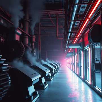BPM 160, Aggressive Industrial, distorted screeching leads, rapid-fire double-kick drums, High-voltage electrical hums, alarm-like synths, and heavy saturated percussion, Chaotic, high-tension energy, industrial grind, white noise sweeps, and relentless, punishing buildups that lead into crushing, distorted bass drops