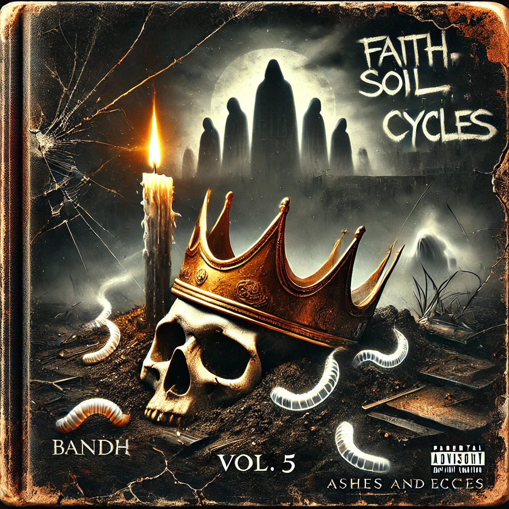 • Tempo: 70–75 BPM, slow enough for psalm-like delivery, steady enough to emphasize 5/10 syllable cadences, • Drums: Deep boom-bap kick + crisp snare, Program kicks to land every 5th count, snares on the 10th, locking to the rhyme form, Light hi-hats roll in 5-beat bursts, • Bassline: Sub-bass or 808 hum, swelling in 5-step progressions, dropping heavy on the 10th to underline each moral, • Melody: Minor-key gospel organ chords, chopped into 5-note phrases, Layer faint choir hums (male and female) that sustain for 10 beats, fading like echoes of scripture, • Texture: Add vinyl crackle, distant tolling bells on every 10th measure, and faint breaths or whispers panned left/right, giving the sense of ancestors speaking through the track, • Overall mood: A gritty gospel funeral march fused with hip-hop — each 5/10 count hits like a moral, each drop feels inevitable, circling like life and death