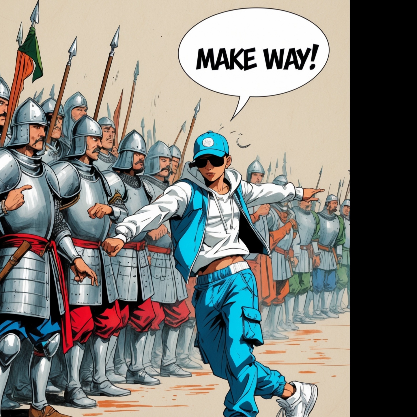 Punchy funk slap bass, deep tagelharpa bass drones, analog modular glitches, whip crack percussion, trap hi-hat rolls, thunder tube FX, fast tempo, Male rap vocal with aggressive, rapid-fire delivery, high syllable density, tight machinegun-style flow ("tatatatata"), sharp clipped articulation, dry tone with slight grit, no melodic phrasing, no swing — strict, fast linear rhythm, front-mixed (in-your-face), clear and percussive consonants, controlled breathwork, confident and unapologetic battle style