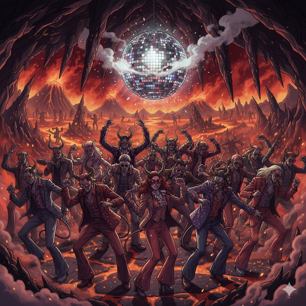 Strong Disco music, Strong Disco beat, gothic rock metal and metalcore sound, Gothic and decadence-inspired atmosphere with dark, disco dance, upbeat and highly danceable tempo, GoticVocal:Funk and Soul, clean vocal tone and strong call, slap base, heavy, powerful riffs synced with kick, twin kick drums, double kick, pounding groove, Use dynamic expression throughout the track, The final mix must have clear vocal clarity, ‑death growls, ‑harsh vocals, ‑guttural vics, ‑roaring voice, ‑rap
