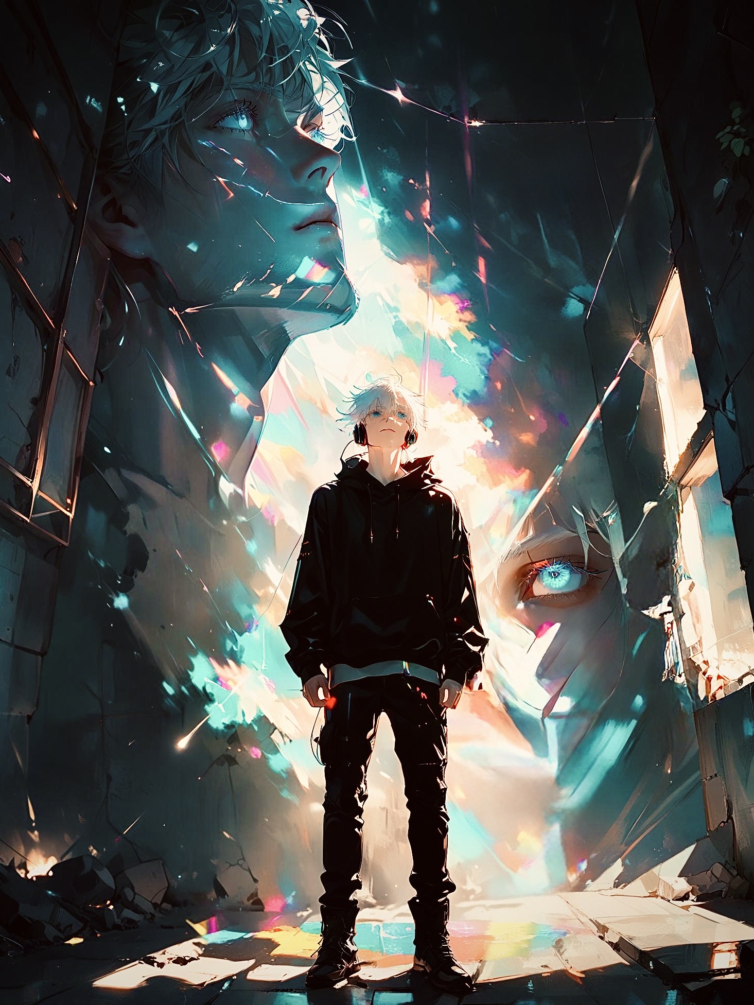 [Mood: Hard stereo widen & Pan exaggerator, Low-mid cleanup & Compression, Dark Dystopia, heavy, cyberpunk-driven, explosive overdrive of consciousness, Spiraling fractal layers combine with Bass low-end and distorted synths, Designed for an Outsider protagonist defying system control, Powerful yet detached, reflective atmosphere, Transitions with sub-bass sweeps, risers, low-pass filters, and glitch stutters create a sense of unstoppable rise, ]