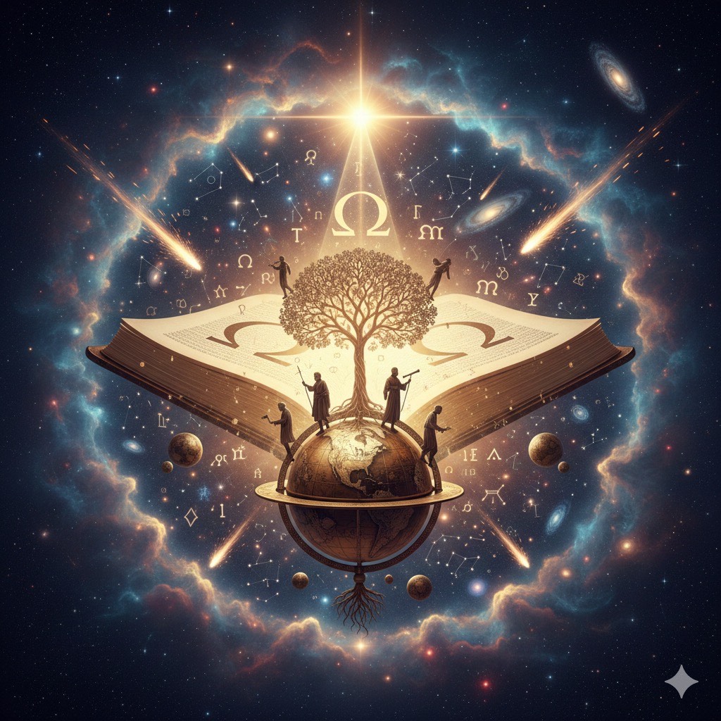 full drums, thick distorted guitars, layered synths, and both voices rising together, The duet becomes emotional and dramatic, overwhelming yet beautiful, Lyrics are mystical science fiction, exploring artificial gods, cosmic machinery, forgotten stars, and humanity searching for meaning inside infinite space, The song feels like a ritual awakening beneath the cosmos, Chorus: big, anthemic, emotional, dramatic