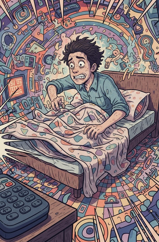 Gothic Metal × Industrial Metal × Darkwave hybrid, Heavy bouncing band sound with crushing low-end, downtuned guitars, grim ambience, and mechanical noise textures, Dark, oppressive, emotionally unstable atmosphere matching themes of decay, hallucination, and collapsing future, BPM 100–110, male vocals