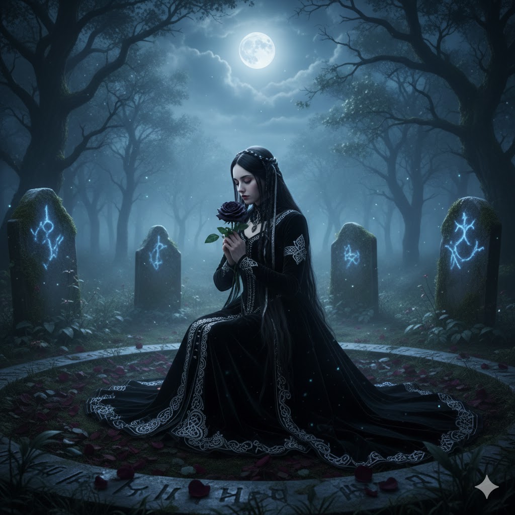 Gothic metal with a strong vampire atmosphere, BPM 140–150, Dark, elegant, and dramatic sound blending gothic and symphonic metal, Fast but heavy rhythm with driving drums, deep bass, and distorted minor-key guitars that feel powerful yet beautiful, Orchestral strings and dark choir pads add a nocturnal, aristocratic mood, Intro: cold moonlit chords and distant bells, Verse: fast but restrained heavy riffs, dark sensual groove, Pre-Chorus: rising tension with subtle orchestral swell, Chorus: powerful and melodic, tragic yet beautiful, sense of eternal curse, Bridge: dramatic breakdown with strings and choir, inner conflict, Final Chorus: grand and emotional, pride and loneliness of immortality, Male vocals are clear, transparent, and expressive, Elegant and melancholic singing, never harsh or aggressive, conveying solitude, guilt, eternal night, and dark romance