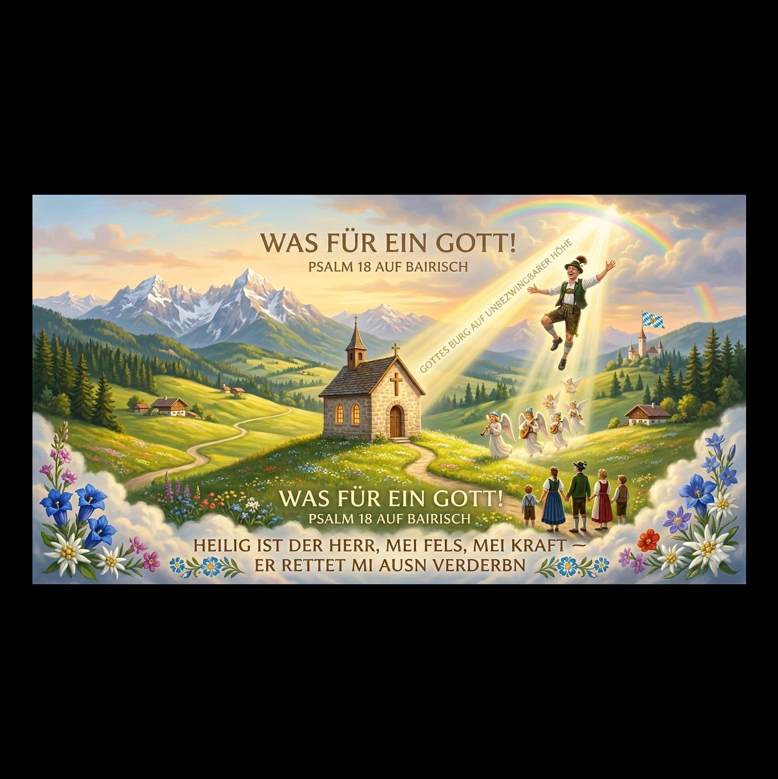 Bairische Kammermusik und Blasmusik, Chor im Hintergrund, Zitter, Ziehharmonika und Alphorn, cool und modern