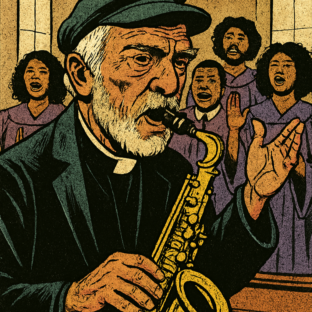 gospel, soul, church choir, preacher vocals, emotional, theatrical, spiritual anthem, uplifting, sermon-style, call and response, dramatic build, organ, handclaps, tambourine, choir harmonies, spoken word intro, Hammond organ, handclaps, tambourine, brass stabs, vocal layering, a cappella bridge, Vocal Style: Lead male vocals in the style of a pastor - deep, passionate, with a preaching intonation, sometimes transitioning into recitative, Choir: a powerful African-American church choir (SATB), with vibrant harmonies, call-and-response, emotional shouts ("Amen!", "Hallelujah!", "Yes, Lord!"), Hammond organ swells, Gospel-style drums with syncopated snare and kick, Handclaps and tambourine accents, Brass stabs in chorus, Rich vocal layering in final chorus, Spoken word intro and bridge with minimal instrumentation