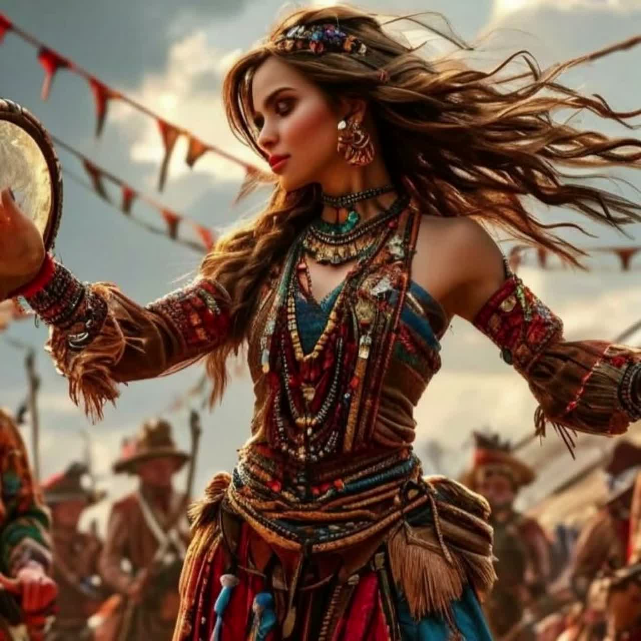 An experimental, cinematic trance track fuses afro-beat folk with Celtic dance and pirate chants in back, Ritual tribal drums in shifting 7/8 and 5/6 support airy pads, reverb-laden riffs, and bluesy bass, Layers blend polyphonic choirs, overtone drones, and expressive throat singing, Vocals—old, raspy, creating multi-ego textures, Dynamic tempo rises from 108 to 144 BPM, Enveloping Dolby Atmos mix emphasizes immersive sonics