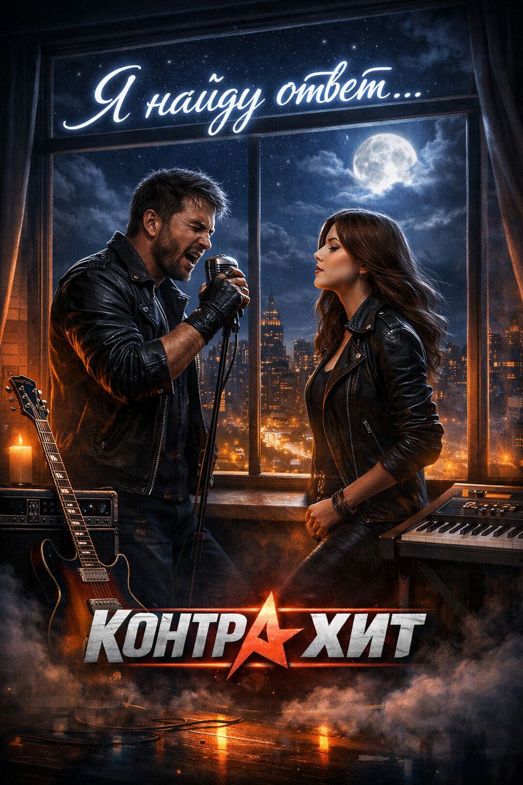 Male and Female duet, Gritty raspy masculine baritone, Soft airy female vocal, Tempo 208 BPM, straight 4/4 rock rhythm, hypnotic and steady with no swing, Strong kick on beats 4 and 4, snare on 2 and 4, Minimal cymbal work, Bass: Deep, warm, melodic electric bass with a steady, driving eighth-note pulse, Guitars: Two clean electric guitars with subtle chorus/flanger effects, One plays sparse, open chord arpeggios; the other adds tight, rhythmic stabs and occasional single-note melodic lines to accent vocals, Keys/Synths: Dance pad or analog synth layering in choruses and bridge, creating a nocturnal, cinematic mood, Vocals: closely following existing lyrics, Tone should be understated, slightly husky, Avoid preacher-style intonation; keep it melodic and minimal, Dance Eurodance, 2026s Slap House, Melodic Pop Chorus, Rhythmic Rap Verse, Spoken Word, Deep Bass, Synthesizer, guitar, synth, pop, rap, drum and bass