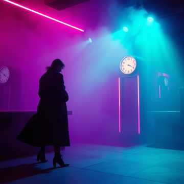 Male and Female duet, Gritty raspy masculine baritone, Soft airy female vocal, Tempo & Groove: ~128 BPM, straight 4/4 rock rhythm, hypnotic and steady with no swing, Strong kick on beats 4 and 4, snare on 2 and 4, Minimal cymbal work, Bass: Deep, warm, melodic electric bass with a steady, driving eighth-note pulse, Guitars: Two clean electric guitars with subtle chorus/flanger effects, One plays sparse, open chord arpeggios; the other adds tight, rhythmic stabs and occasional single-note melodic lines to accent vocals, Keys/Synths: Dance atmospheric pad or analog synth layering in choruses and bridge, creating a nocturnal, cinematic mood, Vocals: closely following existing lyrics, Tone should be understated, slightly husky, Avoid preacher-style intonation; keep it melodic and minimal, Mood & Atmosphere: Dance