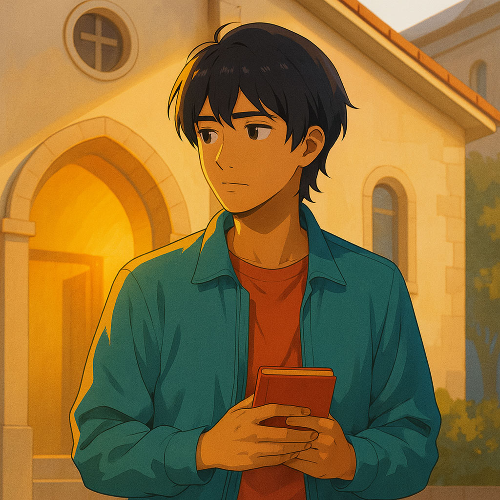 ethereal dream-folk x opm storytelling, hazy acoustic textures with shimmering ambient layers, breathy male vocals drifting like memory, soft bells and pad tones evoking chapel warmth, minimal percussion and glowing harmonic swells, nostalgic Tagalog narrative of longing and faith, airy chorus with echoing harmonies, bittersweet and weightless atmosphere, unplugged live session
