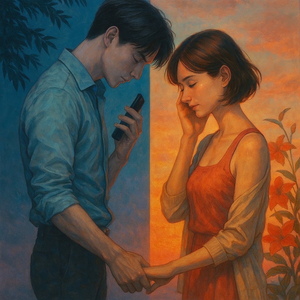 unplugged, ethereal folk x space ambient x acoustic progressive fusion, fingerpicked acoustic guitars with cosmic shimmer, airy harmonics and soft e-bow textures, emotional male lead with whispered heartbreak, celestial female harmonies like fading radio calls, gentle polyrhythmic percussion tapping like star pulses, wide atmospheric pads evoking deep space drift, melancholic delivery, slow evolving build into a weightless, dissolving outro, j-metal