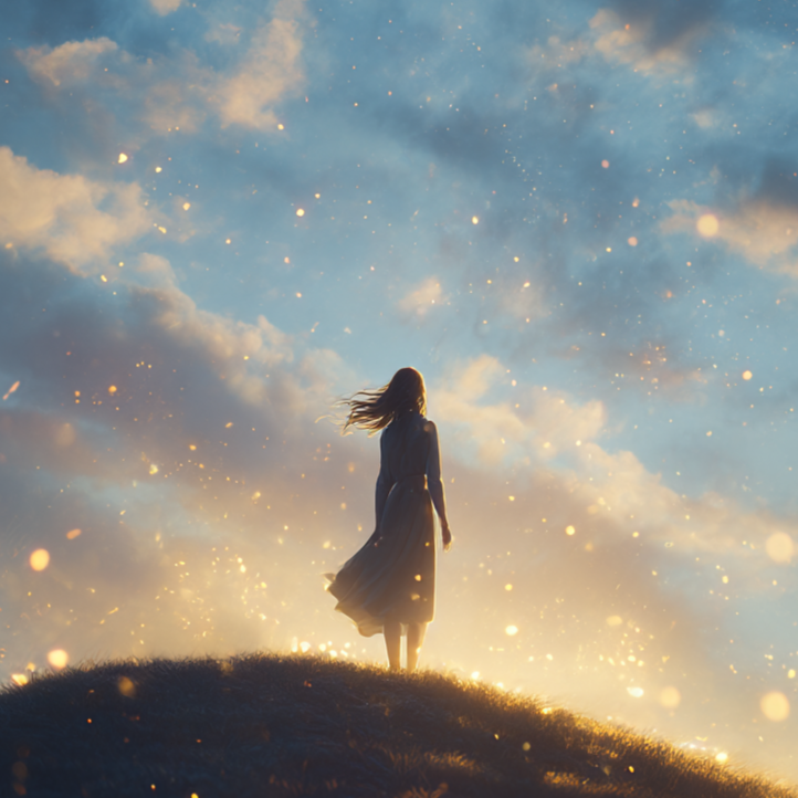 An emotional atmospheric rock track led by husky, expressive female vocals, The song begins with bright delay guitar arpeggios and soft ambient pads, gradually building with deep bass and open drums, The reverb-rich guitars create a vast soundscape while the husky voice delivers heartfelt emotion — raw yet warm, The arrangement evolves from quiet introspection to a soaring, anthemic climax filled with light, freedom, and transcendence, blending organic rock instrumentation with cinematic depth