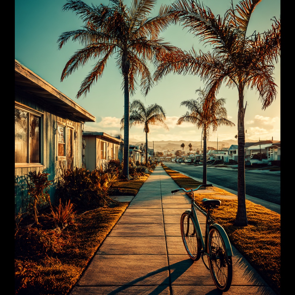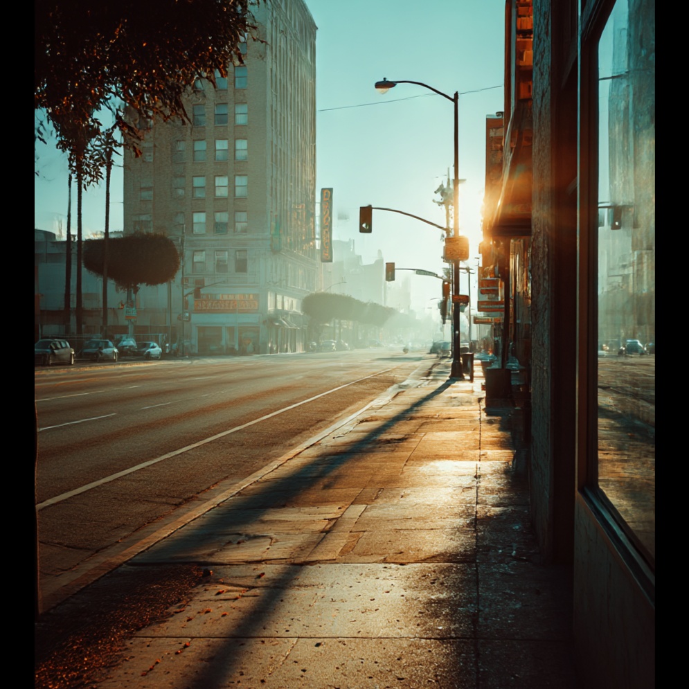 West Coast-inspired mid-tempo track blending mellow indie soul, sunlit R&B, and breezy lo-fi pop, Warm guitars, light synth textures, and smooth beats evoke the feeling of cruising through Los Angeles streets at golden hour, Relaxed yet rhythmic, with subtle jazz and funk undertones, A dreamy, nostalgic vibe that feels like coastal air and faded film grain — easy, reflective, and quietly joyful