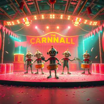 Choral style, Multi-singer arrangement, complex vocal arrangement, 10 distinct vocals, 10-way sonic distribution, Ultra-high definition vocal layering, polished Group vocal layers, Complextro, Fantasy Zombie Carnival Batidão Finale Pop, Happy Kawaii Dance Pop, VTuber Festival Finale, Bright Carnival Electro, Brazilian Funk Batidão groove, Jersey Club bounce, high-pitched Japanese anime female group vocals, bratty cute sparkling tone, crystal-clear chant hooks, marching brass anime parade ensemble, festive wind brass layers, sparkling bells, toy synth plucks, celesta shimmer, fantasy gamecore sparkle textures, tight cute kick, bouncy mono 808 bass, crisp clap chants, confetti FX, magical carnival parade energy, joyful grand finale anthem, ultra-polished anime pop mastering, Glitchy vocal chops, neon-drenched atmosphere, heavy wobble bass, bitcrushed synths, orchestral stabs, tribal drums, laser sounds, high-speed BPM, chaotic arrangement, sensory overload, multi-layered synthesis, by hapines75